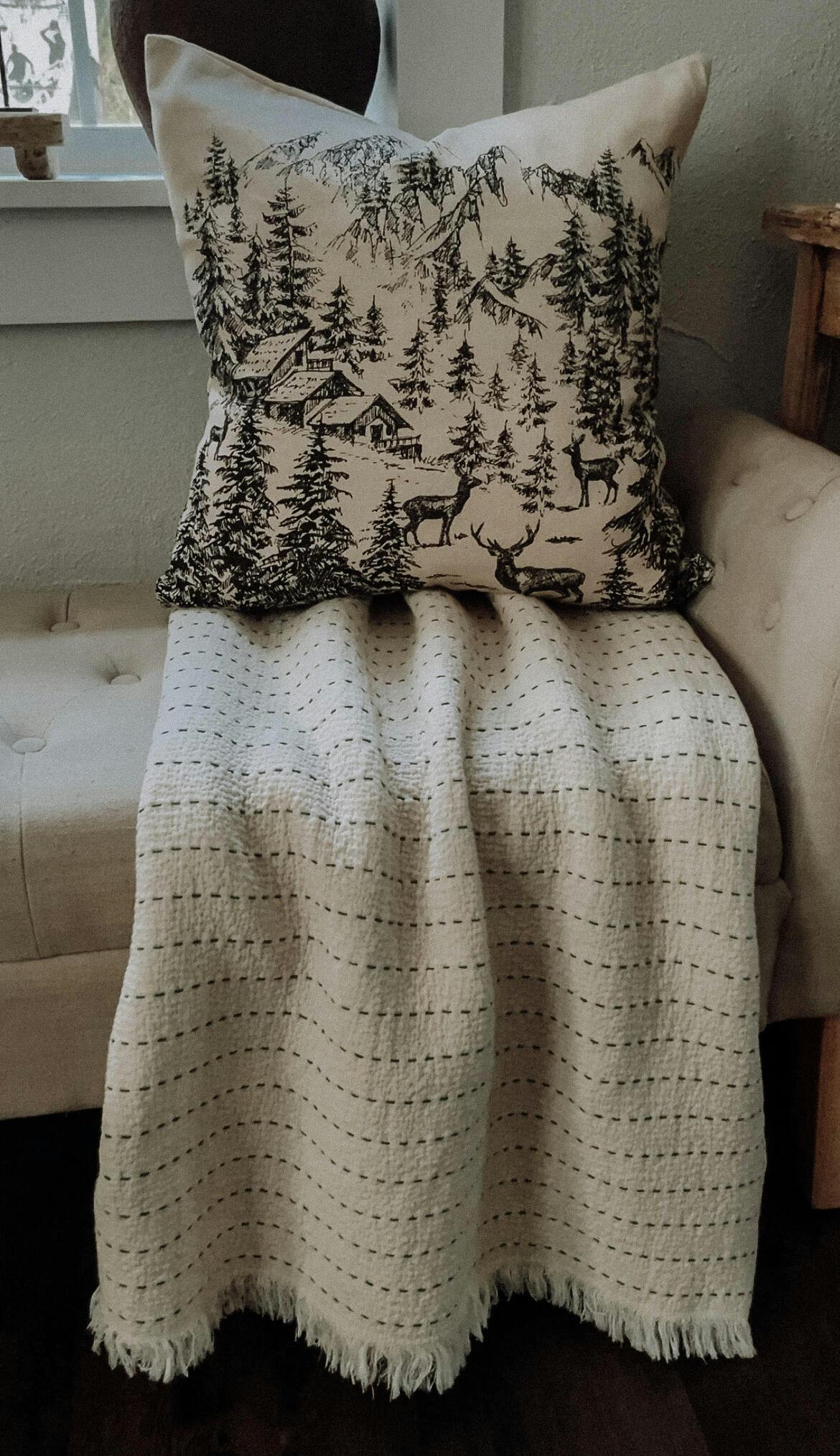 The quality of this blanket is so good! I love the texture it brings to my living room styled for the holidays. The green stitching is such a festive minimal touch. Love it so much!